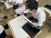 5年生は、国分寺を描いています。建物の奥行きや瓦の様子などを丁寧に描きました。