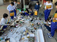 唐子浜お宝探偵団の3年生は、唐子浜にどのようなごみが落ちているか調べに行きました。